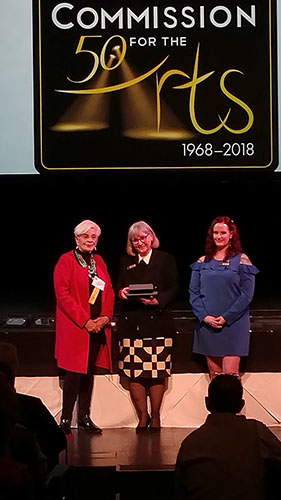 On January 31st Pat Moss was recognized by the Virginia Commission for the Arts for her continuing inspiration of the arts and for having a significant impact on the communities of Virginia. The 50th anniversary program honored her along with 49 other people and groups whose achievements over the last 50 years have led the effort to remind us why the arts are so important, if not essential to our lives.